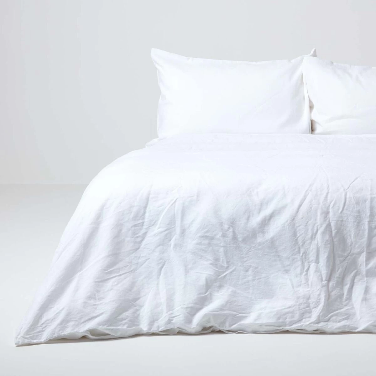 Luxury white linen duvet cover for Continental beds, woven from French flax linen and combed cotton. This washed linen duvet cover includes linen pillowcases.