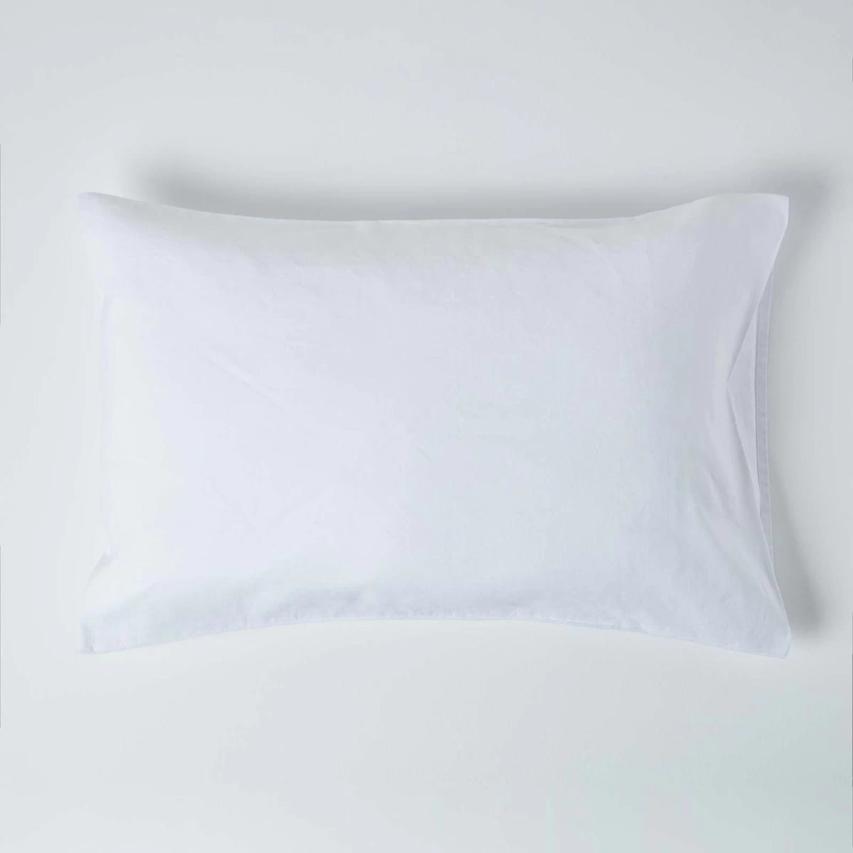 Luxury white Housewife pillowcase from the linen bed linen collection at Homescapes. Pair with the matching white linen duvet cover set for a complete look. Woven from a unique blend of French flax linen and soft combed cotton, this breathable linen pillowcase is kind and gentle on skin. With an envelope closure, this white housewife pillowcase gets softer with every wash.