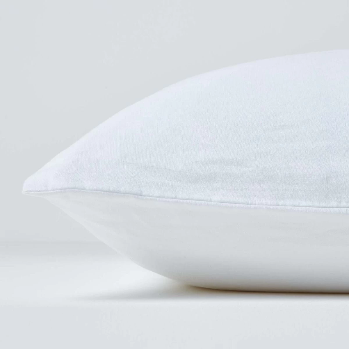 Luxury white linen pillowcase, part of linen bed linen range. Woven from French flax linen and combed cotton, this Housewife pillowcase features envelope closure.