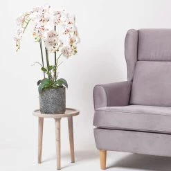 Giant Phalaenopsis white artificial orchid from Homescapes with realistic artificial orchid flowers in a cement pot, ideal for adding style to contemporary interiors.