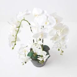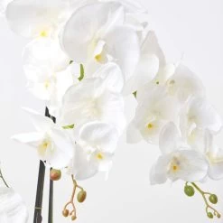 Crafted from silk-like polyester for botanical accuracy, this subtle artificial white and green orchid is perfect for adding style to your office or home to brighten up living spaces. This artificial white orchid features stunning white and green flowers with handcrafted petals giving them a realistic and stylish look. With lifelike stems, soil and leaves this faux orchid plant can be arranged to your liking and is just like the real thing.