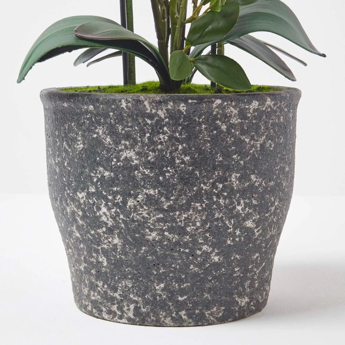 Measuring 82 cm tall, handcrafted by skilled experts and UV treated to ensure lasting colour, this faux plant looks both realistic and lifelike. Sat in a traditional dark ceramic pot for added style to rustic interiors, this fake orchid plant is easy to care for, simply dust with a damp cloth regularly and keep out of direct sunlight. Mix and match from our range of plants available to add decoration in your home.