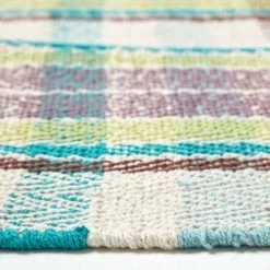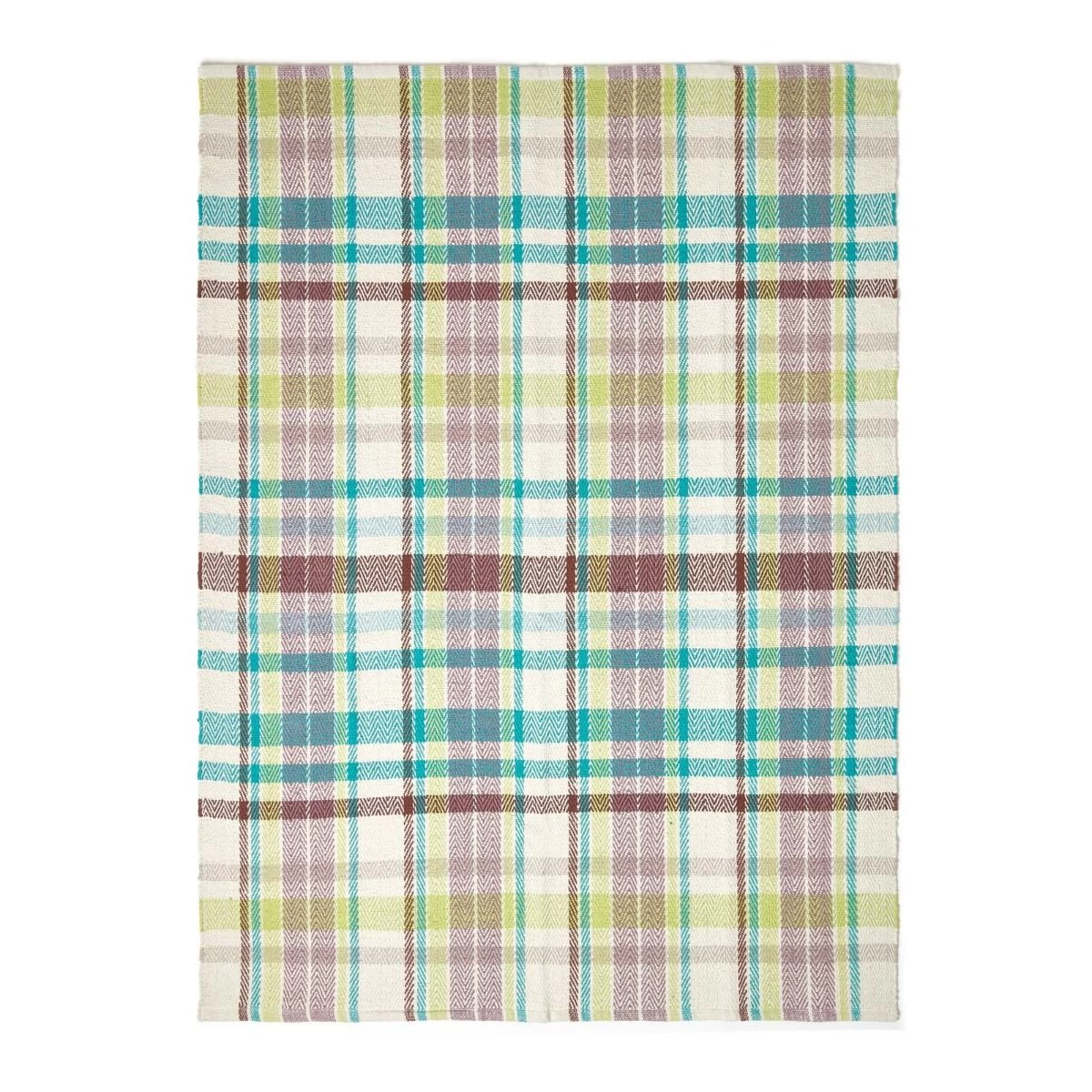 Woven from 100% cotton on a traditional jacquard handloom, the Wilson rug is patterned with a brightly coloured tartan design featuring blue, yellow, brown and ecru. Available in four sizes including a runner, this rug has folded edges for a tidy finish.