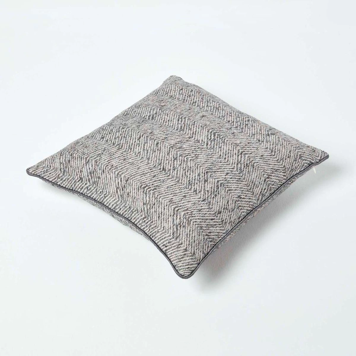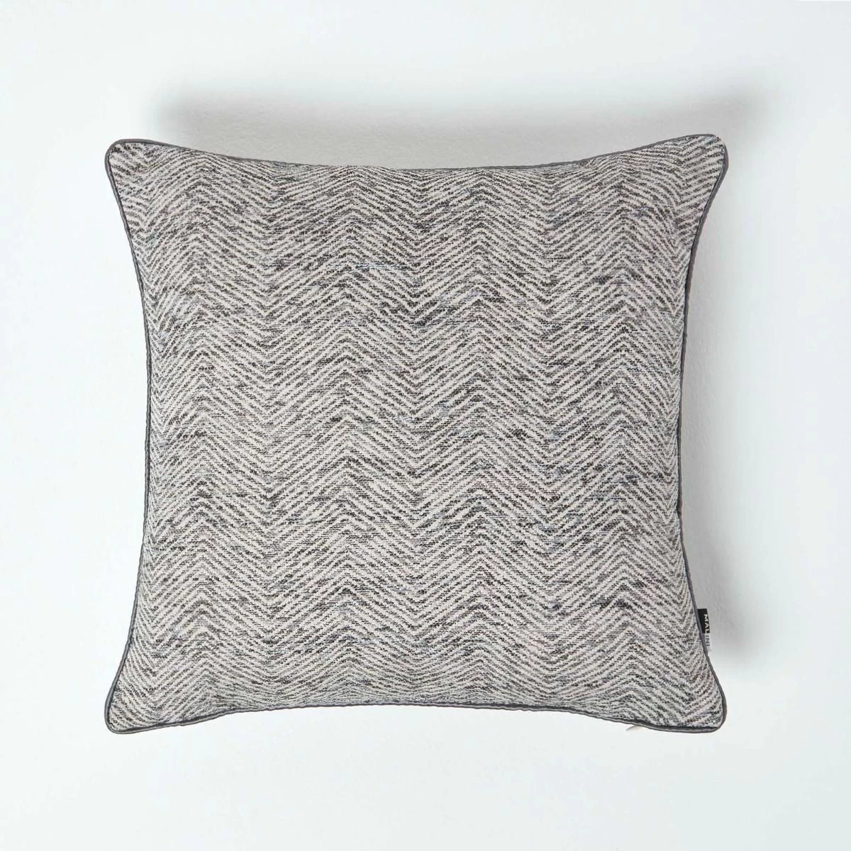 Textured grey scatter cushion. 43 x 43 cm woven grey cushion with distressed chevron pattern, contemporary style bed or sofa decorative cushion.