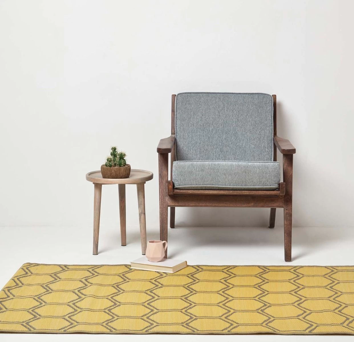 Expanding the bee trend, this honeycomb outdoor rug brings colour and design to your garden. This large yellow outdoor rug measures 182 x 122cm.
